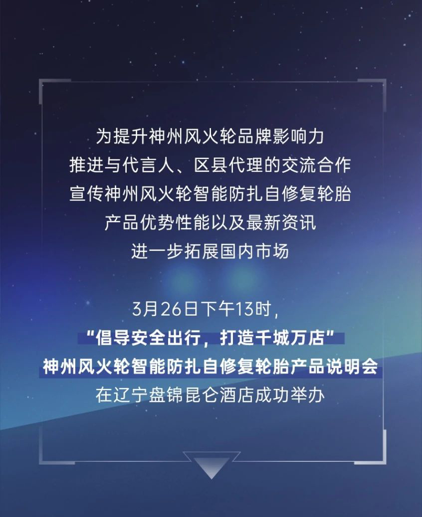 【盤錦站】“倡導(dǎo)安全出行,打造千城萬(wàn)店”神州風(fēng)火輪智能防扎自修復(fù)輪胎產(chǎn)品說明會(huì)