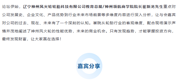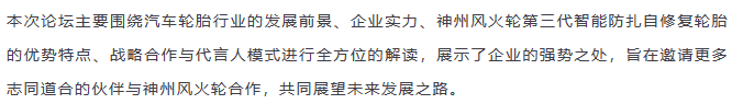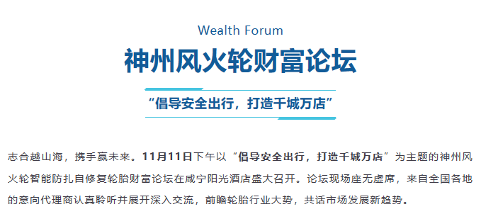 【盤錦站】“倡導(dǎo)安全出行,打造千城萬店”神州風(fēng)火輪智能防扎自修復(fù)輪胎財富論壇